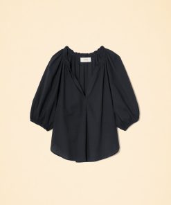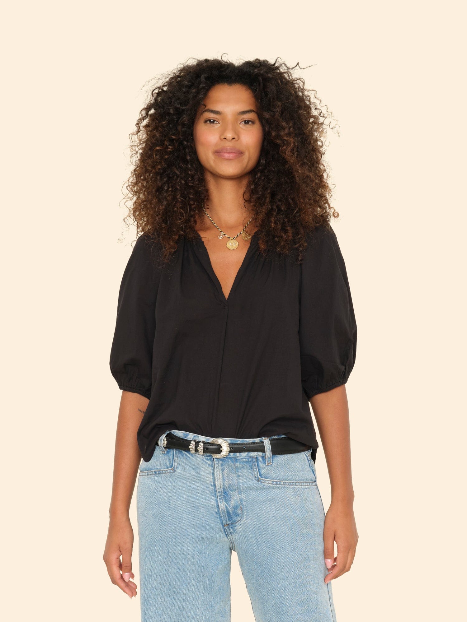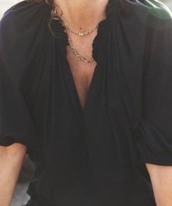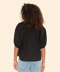For the Frill of it. Made in our classic lightweight woven cotton poplin for a lived-in look and feel, Jules is an easy popover with a ruffle neckline and bubble sleeves with an elastic cuff.
