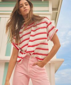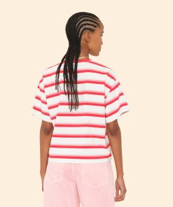 Back to Basics. Paulina is new this season in our ultra-soft striped cotton jersey. Paulina is an updated version of our bestselling Palmer Tee with a left chest pocket and contrast ringer neck.