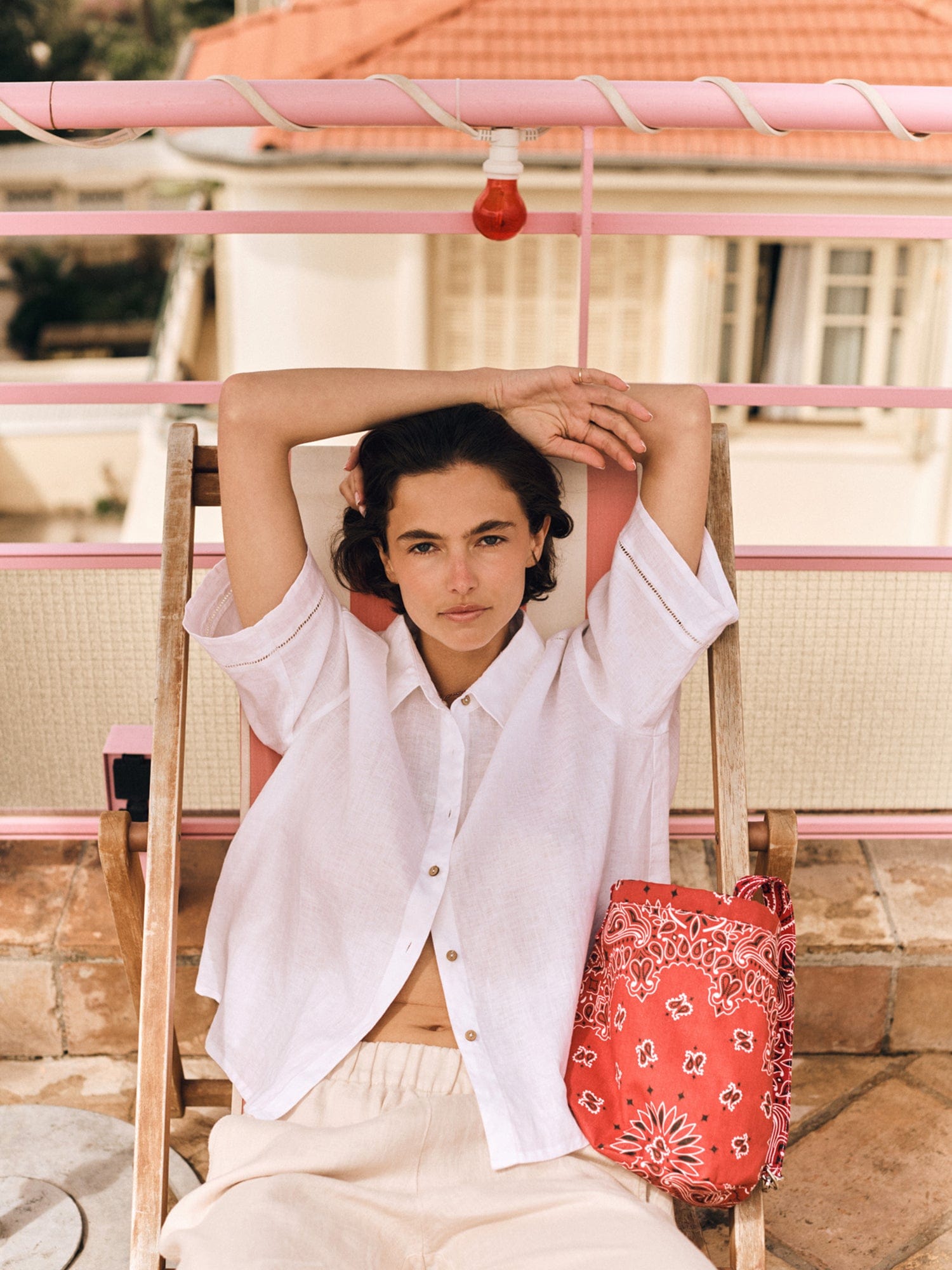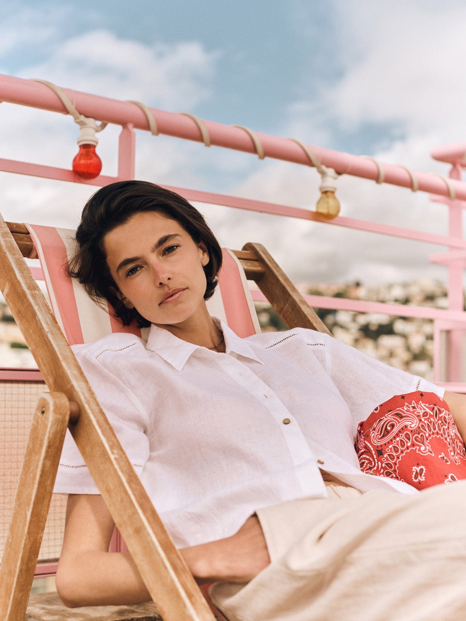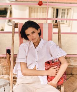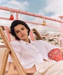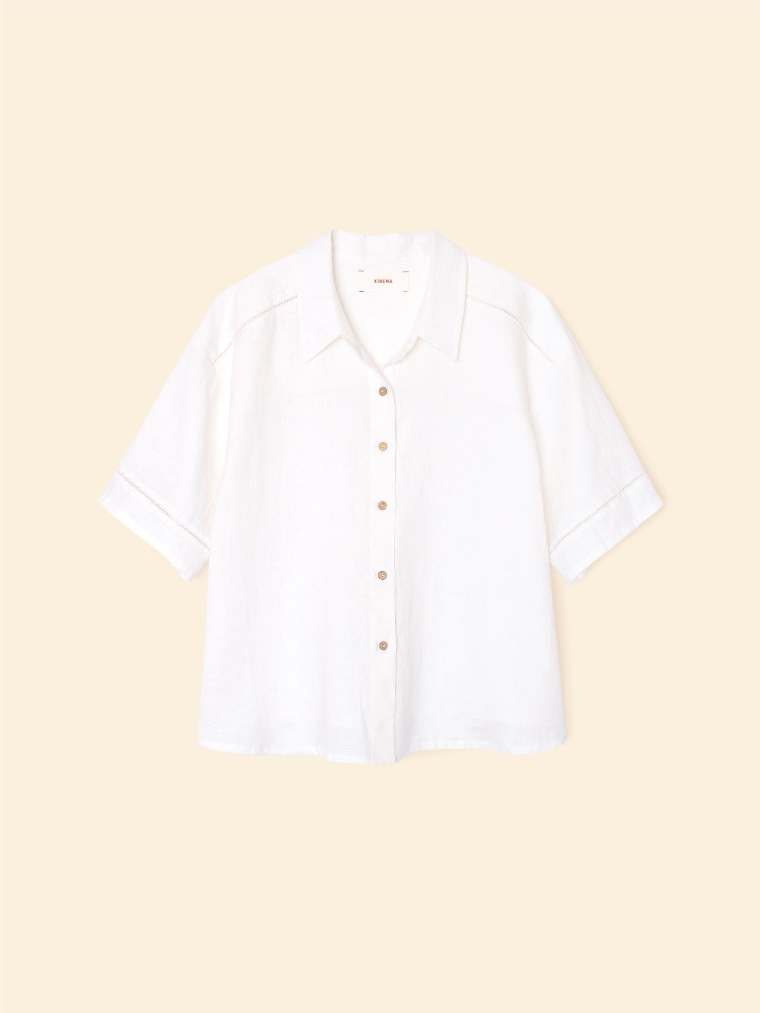 Vacation Mode. Hendry is made in our new lightweight linen. Hendry is a button-front shirt with coconut buttons and lattice trim details throughout.